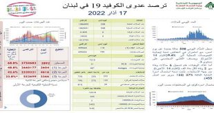 بيروت-سانا سجلت وزارة الصحة اللبنانية 6 حالات وفاة و508 إصابات جديدة بفيروس كورونا خلال