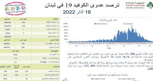 بيروت-سانا سجل لبنان 7 حالات وفاة و536 إصابة جديدة بفيروس كورونا خلال الـ 24 ساعة الماضية.