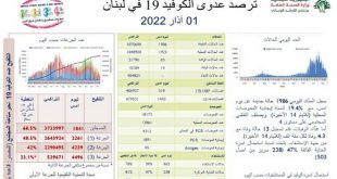 بيروت-سانا سجل لبنان 13 حالة وفاة و1986 إصابة جديدة بفيروس كورونا خلال الساعات الأربع والعشرين الماضية.