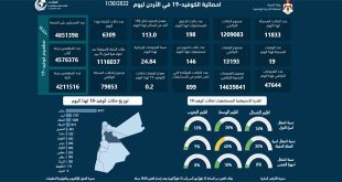 عمان-سانا سجل الأردن 19 حالة وفاة و11833 إصابة جديدة بفيروس كورونا خلال الساعات الأربع والعشرين الماضية.