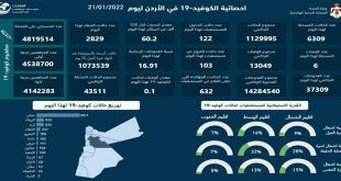 عمان-سانا سجل الأردن 6 وفيات و6309 إصابات جديدة بفيروس كورونا خلال الساعات الأربع والعشرين الماضية.