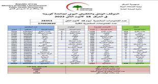بيروت-سانا سجل لبنان 15 حالة وفاة و 7592 إصابة جديدة بفيروس كورونا خلال الساعات الـ24 الماضية في ارتفاع بمؤشر الإصابات عن يوم أمس. وذكرت وزارة الصحة العامة اللبنانية في تقريرها اليوم أن العدد التراكمي لحالات الإصابة المؤكدة بالفيروس منذ تفشي …