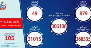 القاهرة-سانا سجلت وزارة الصحة والسكان المصرية 49 حالة وفاة و879 حالة إصابة جديدة بفيروس كورونا المستجد خلال الساعات الأربع وعشرين الماضية. وأوضح الدكتور حسام عبد الغفار المتحدث الرسمي لوزارة الصحة والسكان أن إجمالي العدد الذي تم تسجيله في مصر بفيروس …