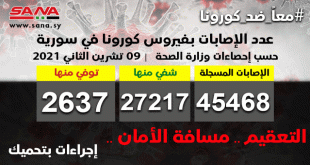 عواصم-سانا وصلت حصيلة إصابات فيروس كورونا حول العالم منذ بدء تفشيه في كانون الأول عام 2019 إلى 251 مليوناً و492 ألفاً بينما تجاوزت الوفيات أكثر من خمسة ملايين و 78 ألف حالة وفقاً لآخر إحصائيات موقع وورلد ميترز الأمريكي. وحسب …