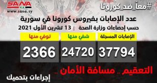 دمشق- سانا أعلنت وزارة الصحة اليوم تسجيل 285 إصابة جديدة بفيروس كورونا في سورية وشفاء 75 حالة ووفاة 8 حالات من الإصابات المسجلة بالفيروس. وأوضحت الوزارة في بيان تلقت سانا نسخة منه أن عدد الإصابات المسجلة في سورية بلغ حتى …