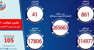 القاهرة-سانا سجلت وزارة الصحة والسكان المصرية 39 حالة وفاة و857 إصابة جديدة بفيروس كورونا خلال الساعات الأربع والعشرين الماضية. وأوضح الدكتور خالد مجاهد المتحدث الرسمي باسم الوزارة في بيان إن إجمالي الإصابات بفيروس كورونا في البلاد وصل لغاية الآن إلى …
