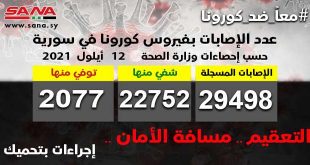 دمشق-سانا أعلنت وزارة الصحة اليوم تسجيل 140 إصابة جديدة بفيروس كورونا في سورية وشفاء 39 حالة ووفاة 6 حالات من الإصابات المسجلة بالفيروس . وأوضحت الوزارة في بيان تلقت سانا نسخة منه أن عدد الإصابات المسجلة في سورية بلغ حتى …