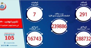 القاهرة-سانا أعلنت وزارة الصحة المصرية تسجيل سبع حالات وفاة و291 إصابة جديدة بفيروس كورونا خلال الساعات الـ 24 الماضية. وذكرت الوزارة في تقريرها اليومي أن إجمالي مصابي كورونا في البلاد بلغ 288732 حالة شفيت منها 239886 وتوفيت 16743 حالة. وكان …