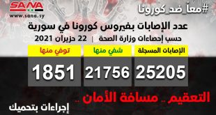 دمشق -سانا أعلنت وزارة الصحة اليوم تسجيل 47 إصابة جديدة بفيروس كورونا في سورية وشفاء 9 حالات ووفاة 3 من الإصابات المسجلة بالفيروس. وأوضحت الوزارة في بيان تلقت سانا نسخة منه أن عدد الإصابات المسجلة في سورية بلغ حتى الآن …