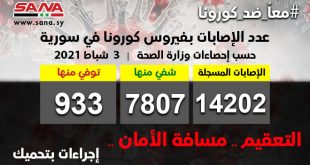 دمشق-سانا تجاوزت حالات الشفاء من الإصابة بفيروس كورونا لليوم الثامن على التوالي عدد الإصابات المسجلة حيث تم شفاء 82 حالة مقابل 60 إصابة جديدة ووفاة أربع حالات في سورية وفق ما أعلنت وزارة الصحة. وأوضحت الوزارة فى بيان تلقت سانا …