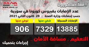 دمشق-سانا تجاوزت حالات الشفاء من الإصابة بفيروس كورونا لليوم الثاني على التوالي عدد الإصابات المسجلة حيث تم شفاء 69 حالة وتسجيل 62 إصابة جديدة ووفاة 6 حالات من الإصابات المسجلة بالفيروس في سورية وفق ما أعلنته وزارة الصحة. وأشارت الوزارة …