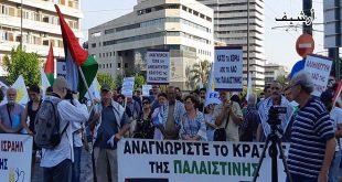 مظاهرة احتجاجية في اليونان رفضاً لمخططات الاحتلال ضم أرض فلسطينية