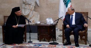 بيروت-سانا أكد الرئيس اللبناني العماد ميشال عون أن قرار كيان الاحتلال الإسرائيلي التنقيب عن النفط والغاز قرب (البلوك رقم 9) في المياه الإقليمية يشكل انتهاكاً خطيراً للغاية لن يسمح لبنان بتنفيذه. وقال عون خلال استقباله بطريرك انطاكية وسائر المشرق للروم …