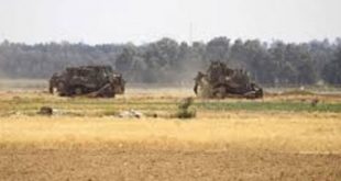 القدس المحتلة-سانا توغلت قوات الاحتلال الإسرائيلي اليوم شرق قطاع غزة المحاصر وجرفت أراضي الفلسطينيين. وذكرت وكالة معا أن عدة آليات عسكرية للاحتلال توغلت شرق القطاع وقامت بتجريف مساحات من أراضي الفلسطينيين. وتتوغل قوات الاحتلال يومياً في أراضي الفلسطينيين على أطراف …