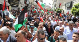 القدس المحتلة-سانا شهدت مدينة نابلس وقفة احتجاجية رفضا لزيارة وزير الخارجية الأمريكي مايك بومبيو الأراضي الفلسطينية المحتلة. وذكرت وكالة وفا أن المشاركين بالوقفة في ميدان الشهداء وسط نابلس رفعوا الأعلام الفلسطينية واللافتات الرافضة لصفقة القرن ورددوا هتافات منددة بسياسة الإدارة …