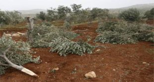 القدس المحتلة-سانا اعتدى مستوطنون إسرائيليون اليوم على أراضي الفلسطينيين جنوب بيت لحم بالضفة الغربية وقطعوا مئات أشجار الزيتون فيها. وأفاد مدير مكتب هيئة مقاومة الجدار والاستيطان في بيت لحم حسن بريجية لوكالة وفا بأن المستوطنين قطعوا نحو 300 شجرة زيتون …