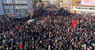 طهران-سانا شارك ملايين الإيرانيين اليوم في تشييع جثمان الفريق قاسم سليماني قائد فيلق القدس في الحرس الثوري الإيراني في مسقط رأسه في كرمان جنوب شرق إيران والذي استشهد يوم الجمعة الماضي في جريمة اغتيال نفذتها طائرات أمريكية قرب مطار بغداد …