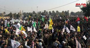 بغداد-سانا شارك آلاف العراقيين اليوم في مراسم تشييع جثامين قائد فيلق القدس في الحرس الثوري الإيراني الفريق قاسم سليماني ونائب رئيس هيئة الحشد الشعبي العراقي أبو مهدي المهندس ورفاقهما الذين استشهدوا جراء عدوان أمريكي بالصواريخ فجر أمس على طريق المطار …