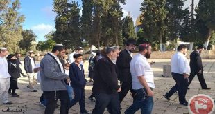 القدس المحتلة-سانا جدد المستوطنون الإسرائيليون صباح اليوم اقتحام المسجد الأقصى المبارك بحماية قوات الاحتلال الإسرائيلي. وذكرت وكالة وفا أن عشرات المستوطنين اقتحموا المسجد الأقصى من جهة باب المغاربة ونفذوا جولات استفزازية في باحاته وسط حراسة مشددة من قوات الاحتلال. وينفذ …