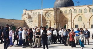 القدس المحتلة-سانا جدد المستوطنون الإسرائيليون صباح اليوم اقتحام المسجد الأقصى المبارك بحماية قوات الاحتلال. وذكرت وكالة وفا أن مجموعات من المستوطنين اقتحموا المسجد الأقصى من جهة باب المغاربة ونفذوا طقوسا استفزازية في باحاته وسط حراسة مشددة من قوات الاحتلال. وينفذ المستوطنون …
