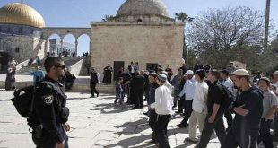 القدس المحتلة-سانا جدد مستوطنون إسرائيليون اليوم اقتحام المسجد الأقصى بحماية قوات الاحتلال الإسرائيلي. وذكرت وكالة وفا أن 64 مستوطنا اقتحموا المسجد الأقصى من جهة باب المغاربة ونفذوا جولات استفزازية في باحاته بحراسة مشددة من قوات الاحتلال الإسرائيلي. وينفذ المستوطنون الإسرائيليون …