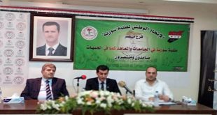 القاهرة-سانا عقد فرع الاتحاد الوطني لطلبة سورية في مصر مؤتمره السنوي تحت عنوان “طلبة سورية في الجامعات والمعاهد كما في الجبهات.. صامدون ومنتصرون”. وجدد طلبة سورية في مصر خلال المؤتمر وقوفهم مع وطنهم في وجه الحرب الإرهابية التي تشن عليها …