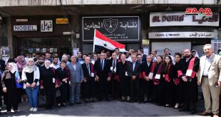 محافظات-سانا تضامنا مع الشعب الفلسطيني وقضيته العادلة نظم المحامون السوريون اليوم وقفة احتجاجية أمام نقابة المحامين في دمشق تنديدا بـ “ورشة البحرين الاقتصادية” التي دعت إليها الإدارة الأمريكية بهدف تمرير ما يسمى “صفقة القرن” الرامية إلى تصفية القضية الفلسطينية وإنهاء …
