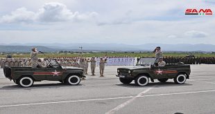 اللاذقية-سانا أقامت قيادة القوات الروسية العاملة في سورية اليوم احتفالا مركزيا في قاعدة حميميم باللاذقية بمناسبة عيد النصر على النازية في الحرب الوطنية العظمى وذلك بحضور منصور عزام وزير شؤون رئاسة الجمهورية. وتضمن الاحتفال عرضا عسكريا شاركت فيه وحدات عسكرية …