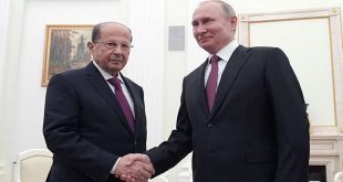 موسكو-سانا جدد الرئيسان الروسي فلاديمير بوتين واللبناني ميشال عون دعم بلديهما لجهود سورية في محاربة الإرهاب وشددا على عدم وجود بديل عن الحل السياسي للأزمة فيها. وجاء في بيان مشترك أصدره الرئيسان عقب لقائهما في الكرملين اليوم نقلته روسيا اليوم …