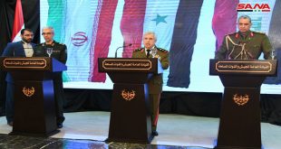دمشق-سانا عقد العماد علي عبد الله أيوب نائب القائد العام للجيش والقوات المسلحة وزير الدفاع مباحثات رسمية مع الوفدين العسكريين الإيراني والعراقي رفيعي المستوى برئاسة اللواء محمد باقري رئيس أركان القوات المسلحة الإيرانية والفريق أول عثمان الغانمي رئيس أركان الجيش …