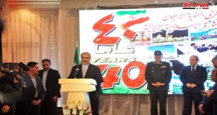 دمشق-سانا أقامت السفارة الإيرانية في دمشق اليوم حفل استقبال بمناسبة العيد الوطني والذكرى الـ 40 لانتصار الثورة الإسلامية الإيرانية وذلك في فندق داما روز بدمشق. وفي كلمة له جدد السفير الإيراني بدمشق جواد ترك آبادي دعم بلاده لسورية شعبا وقيادة …