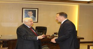 دمشق-سانا تسلم نائب رئيس مجلس الوزراء وزير الخارجية والمغتربين وليد المعلم خلال استقباله ألكساندر يفيموف سفير روسيا الاتحادية صباح اليوم نسخة عن أوراق اعتماده سفيرا مفوضا وفوق العادة لروسيا الاتحادية لدى الجمهورية العربية السورية. ودار الحديث خلال اللقاء حول علاقات …