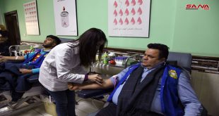 دمشق-سانا شارك وفد من المنظمات الشبابية التونسي يزور دمشق حاليا بدعوة من منظمة اتحاد شبيبة الثورة بحملة تبرع بالدم دعما لجرحى الجيش العربي السوري وأخرى للتشجير. وفي تصريحات لـ سانا في مركز جامعة دمشق لنقل الدم عبر زياد الماهر رئيس …