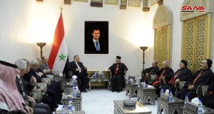 دمشق-سانا أكد رئيس مجلس الشعب حموده صباغ خلال لقائه مساء اليوم وفداً كنسياً برئاسة البطريرك أغناطيوس يوسف الثالث يونان بطريرك السريان الكاثوليك الأنطاكي في العالم أهمية الدور الكبير الذي يقوم به رجال وعلماء الدين الإسلامي والمسيحي في ترسيخ الوحدة الوطنية …