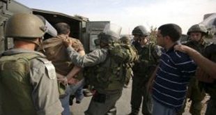 القدس المحتلة-سانا اعتقلت قوات الاحتلال الإسرائيلي اليوم عشرة فلسطينيين من مناطق متفرقة من الضفة الغربية. وذكرت وكالة وفا الفلسطينية للأنباء أن قوات الاحتلال شنت حملة مداهمات طالت منازل الفلسطينيين في مدن الخليل ونابلس وطوباس وقرية جبل المكبر بالقدس المحتلة واعتقلت …