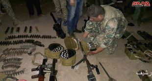 حماة-سانا عثرت الجهات المختصة خلال تمشيطها تلول الحمر بريف حماة على مستودع أسلحة وذخيرة وقذائف من مخلفات الإرهابيين من بينها صواريخ “تاو” أمريكية الصنع. وذكر مراسل سانا في حماة أن عناصر الهندسة في الجهات المختصة وخلال تمشيط تلول الحمر لرفع …