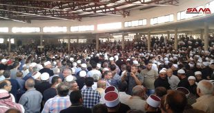 السويداء-سانا بمشاركة شعبية حاشدة تم في محافظة السويداء صباح اليوم تشييع عدد من الشهداء الذين ارتقوا بسبب الاعتداءات الإرهابية أمس. وأشار المشاركون في التشييع إلى أن الوطن يعلو ولا يعلا عليه مؤكدين استعدادهم الدائم للدفاع عن الوطن وتقديم الغالي والنفيس في …