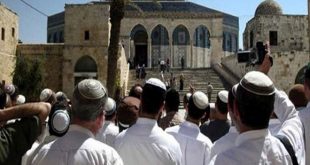 القدس المحتلة-سانا جدد المستوطنون الإسرائيليون اقتحاماتهم للمسجد الأقصى المبارك اليوم تحت حماية قوات الاحتلال. وذكرت وكالة وفا الفلسطينية أن 92 مستوطنا اقتحموا المسجد من جهة باب المغاربة ونفذوا جولات استفزازية في أرجائه. وكان أكثر من 1300 مستوطن اقتحموا الاقصى أمس …