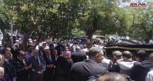 دمشق-سانا شيع اليوم جثمان نائب رئيس الجبهة الوطنية التقدمية عمران الزعبي من مشفى الشامي بدمشق إلى مقبرة باب الصغير بدمشق ثم ووري الثرى وسط حضور رسمي وحزبي وشعبي واسع. والراحل الزعبي الذي وافته المنية أمس من مواليد دمشق 1959 ويحمل إجازة …