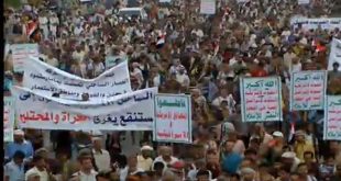 صنعاء-سانا ندد المشاركون في مسيرة يمنية حاشدة اليوم بعدوان تحالف النظام السعودي على محافظة الحديدة والتواطؤ الأممي مع قوى العدوان. وأكد بيان صدر عن المشاركين بالمسيرة وقوف اليمنيين صفا واحدا مع أفراد الجيش اليمني واللجان الشعبية في مواجهة قوى الغزو …