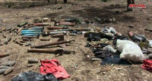 حمص-سانا عثرت الجهات المختصة خلال تمشيطها قرية الغنطو بريف حمص الشمالي على أسلحة متنوعة وقذائف صاروخية وهاون متنوعة والغام من مخلفات الإرهابيين. وأفاد مراسل سانا الحربي من حمص بأن الجهات المختصة بالتعاون مع الأهالي واصلت عملية تمشيط قرية الغنطو شمال …