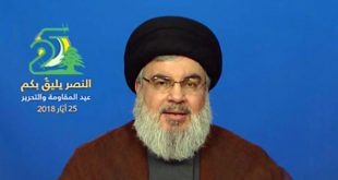 بيروت-سانا أكد الأمين العام لحزب الله السيد حسن نصرالله أن المقاومة التي صنعت انتصار العام 2000 ودحرت المحتل الإسرائيلي من جنوب لبنان هي اليوم أقوى وأشد وأصلب. وقال السيد نصرالله في كلمة له اليوم بالذكرى الـ 18 لعيد المقاومة والتحرير: …