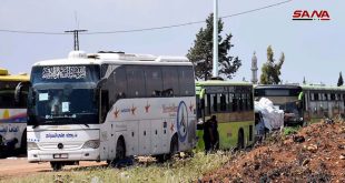 إخراج 122 حافلة تقل مئات الإرهابيين وعائلاتهم من ريفي حمص الشمالي وحماة الجنوبي ونقلها إلى شمال سورية