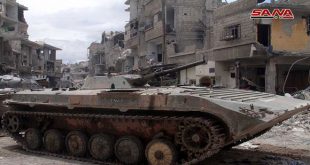 ريف دمشق-سانا نفذ سلاحا الجو والمدفعية في الجيش العربي السوري ضربات مركزة ضد أوكار وتحصينات التنظيمات الإرهابية في المنطقة الشمالية من حي الحجر الأسود محققة إصابات مباشرة في صفوفهم وذلك في إطار العملية الرامية إلى تطهير جنوب دمشق من الإرهاب. …