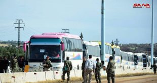 حمص-سانا تم اليوم إخراج الدفعة الأولى من الإرهابيين غير الراغبين بالتسوية وعائلاتهم من ريفي حماة الجنوبي وحمص الشمالي إلى شمال سورية كمقدمة لإخراج دفعات جديدة في الأيام القادمة وصولا إلى إخلاء المنطقة من الإرهابيين ومن ثم دخول مؤسسات الدولة إليها. وذكر …
