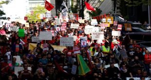 لوس انجلوس-سانا قاد ناشطون من نقابات عمال مسيرات في عدة مدن أميركية بمناسبة عيد العمال العالمي للتنديد بالسياسات التي ينتهجها الرئيس الاميركي دونالد ترامب وخصوصا بشأن الهجرة. وذكرت رويترز أن أكبر تجمع شهدته مدينة لوس أنجلوس الأميركية حيث سار أمس …