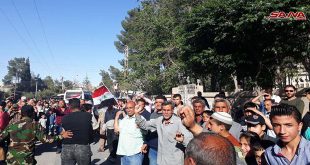 ريف دمشق-سانا دخلت وحدات من قوى الأمن الداخلي بلدة جيرود في القلمون الشرقي بعد ظهر اليوم بعد إخراج الإرهابيين وعائلاتهم من البلدة وسط ترحيب كبير من الاهالى الذين تجمعوا بالالاف فى الساحة العامة للبلدة وشوارعها وجالوا بمسيرات حاشدة فى أرجائها …