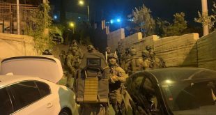 القدس المحتلة -سانا اعتقلت قوات الاحتلال الإسرائيلي مساء اليوم سبعة فلسطينيين في مدينة القدس المحتلة. وذكرت وكالة وفا أن قوات الاحتلال اقتحمت بلدتي جبل المكبر وسلوان ودهمت منازل الفلسطينيين وفتشتها واعتقلت سبعة منها. واعتقلت قوات الاحتلال اليوم خمسة فلسطينيين في …