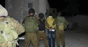 القدس المحتلة-سانا اعتقلت قوات الاحتلال الإسرائيلي اليوم ثلاثة فلسطينيين في الضفة الغربية. وذكرت وكالة وفا أن قوات الاحتلال اقتحمت مدينة طولكرم وقرية رنتيس شمال غرب رام الله وداهمت منازل الفلسطينيين وفتشتها واعتقلت ثلاثة منهم. واعتقلت قوات الاحتلال أمس 12 فلسطينيا …