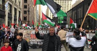 واشنطن-سانا نظم أبناء الجالية الفلسطينية المقيمون في مدينة شيكاغو بالولايات المتحدة الأمريكية مظاهرة حاشدة تنديداً باعتداءات الاحتلال الإسرائيلي على مدينة القدس المحتلة. وذكرت وكالة وفا أن المشاركين في المظاهرة رفعوا العلم الفلسطيني ورددوا شعارات تندد بمحاولات الاحتلال تهجير الفلسطينيين في …